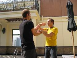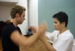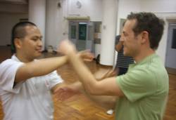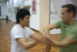 Nach viel Theorie folgt die Praxis - Chi Sao-Training mit Patrick´s Schülern - einige von ihnen haben am Chi Sao-Contest im Kung Fu Corner teilgenommen - und das sie dort nicht grundlos waren, hat man gemerkt! Im Chi Sao zahlen sich ihre sehr entspannten Bewegungen aus.