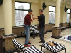 Und auf gar keinen Fall darf auf dieser Seite Buick Yip vergessen werden. Als wir in der Schule von Tsu Sheung Tin zu Gast waren, bat er seinen langjährigen Schüler Buick uns zur Seite zu stehen und uns in Hong Kong zu begleiten. Buick unterrichtet selber nicht, aber er ist ein Wing Chun-Verrückter im positiven Sinn. Er redet ständig von Wing Chun und aufgrund seiner 40-jährigen Erfahrung hat er viel Fundiertes dazu zu sagen. Wir haben uns stundenlang mit ihm unterhalten und es wurde nie langweilig. Buick steckt voller Energie und Lebensfreude und ist ständig davon beseelt, sein Verständnis vom Wing Chun Kung Fu zu vermitteln. Und sein ganzes Gesicht lachte, wenn er nicht nur reden, sondern auch "zeigen" konnte.
