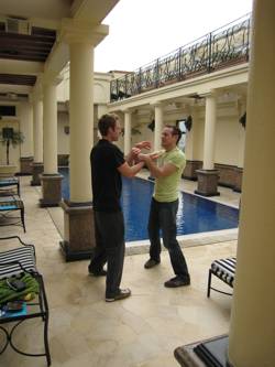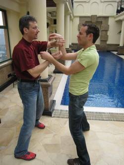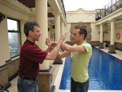 Sven und Heio beim Chi Sao-Training mit Schülern von Patrick Leung an der City University of Hong Kong